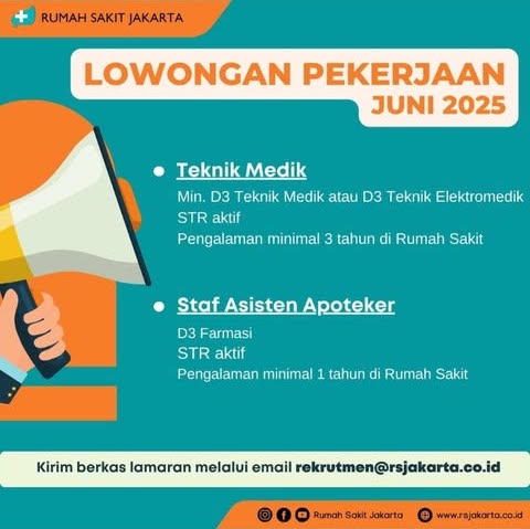 Di Rumah Sakit Jakarta, kami percaya bahwa pelayanan kesehatan terbaik hanya bisa diberikan melalui dedikasi, profesionalisme, dan semangat kerja tim. Karena itu, kami selalu membuka peluang bagi tenaga medis maupun non-medis yang ingin berkontribusi dalam meningkatkan kualitas layanan kesehatan masyarakat.
